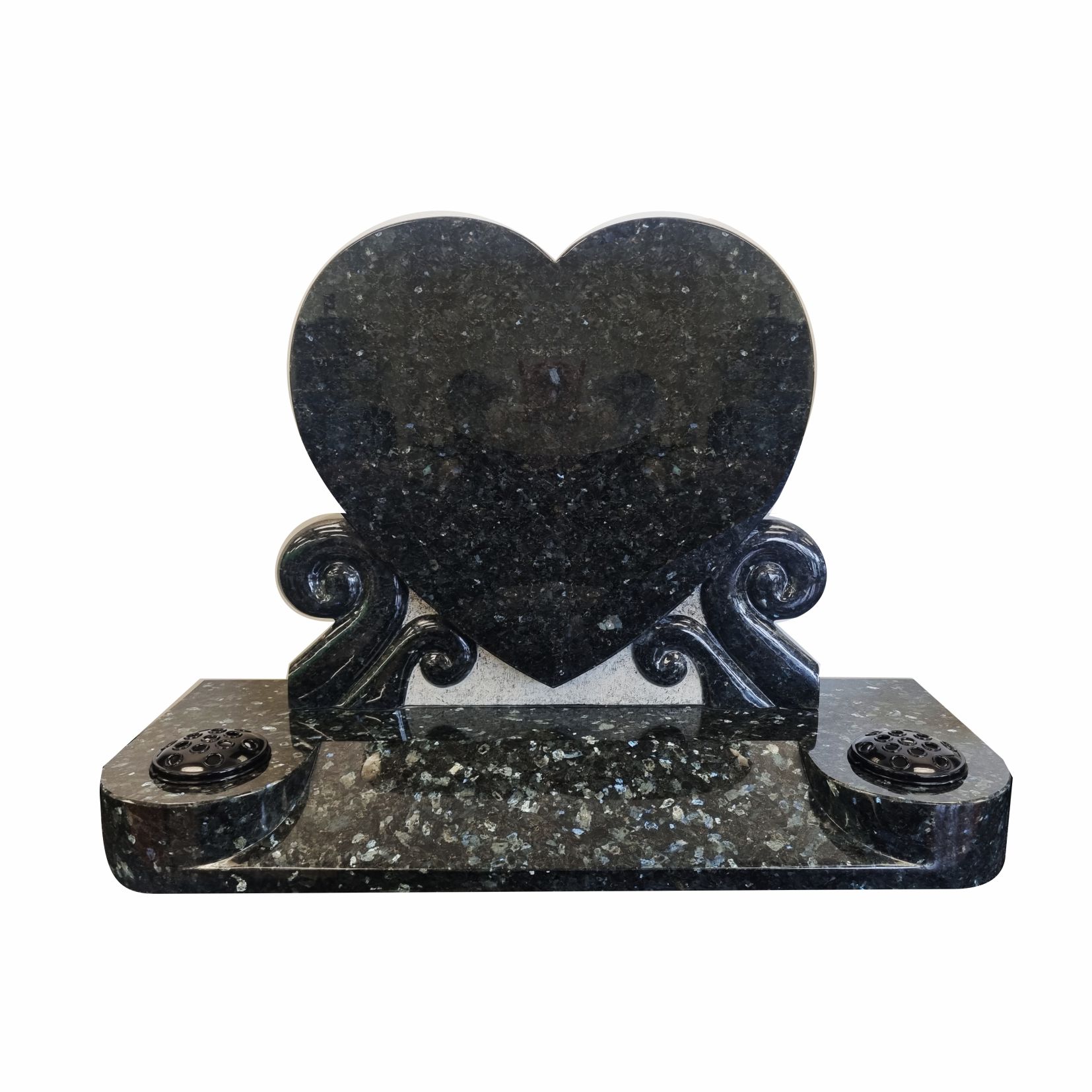 A stunning Blue Pearl Heart with Koru’s set on a Rounded Splay Base with 2 Dome Top Vases.